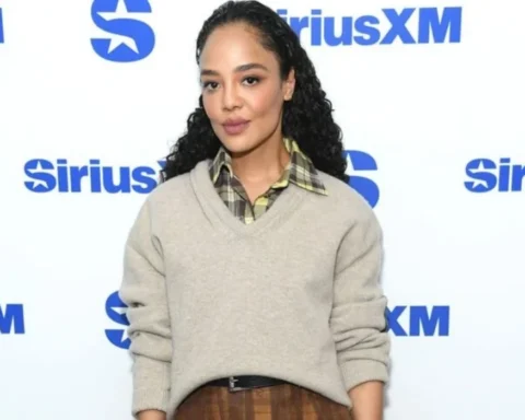 Tessa Thompson promotes Netflix series 'His & Hers' at SiriusXM, showcasing bold Acne Studios outfit, blending daring style with creative fashion choices.